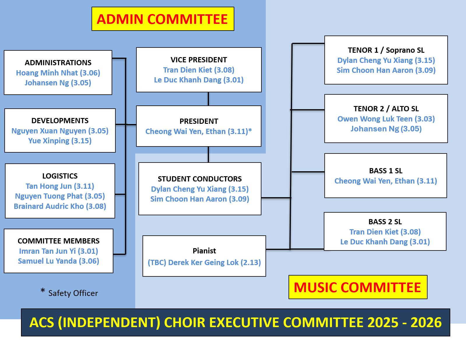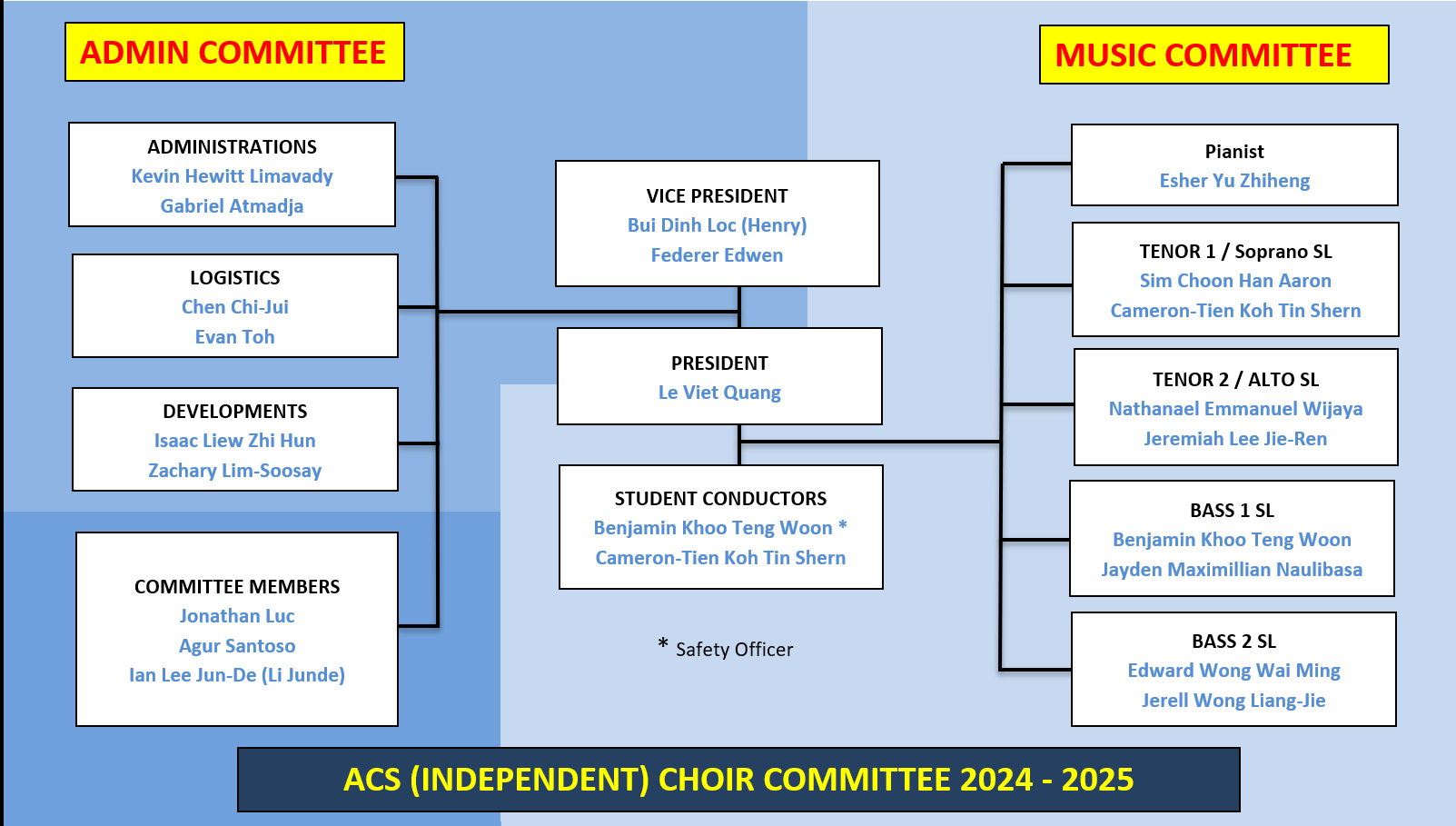 The structure of the choir committee is purposefully non-hierarchical, built on the belief that every voice matters. It is a collegial community where each member shares equally in shaping the vision, planning with purpose, and bringing to life the endeavours we undertake. United by our shared commitment to serve, to care, and to excel, we move forward not as individuals, but as one choir, one family.