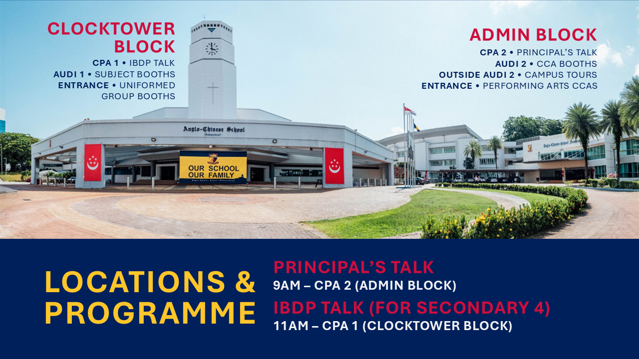 Learn more about the School (9 am @ CPA 2) and IBDP programme (11 am @ CPA 1) from our Senior Admin.